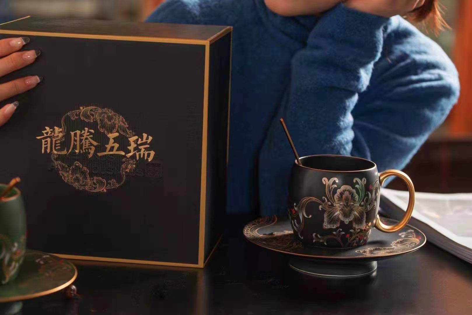 “龍騰五瑞”鎏金國潮陶瓷杯