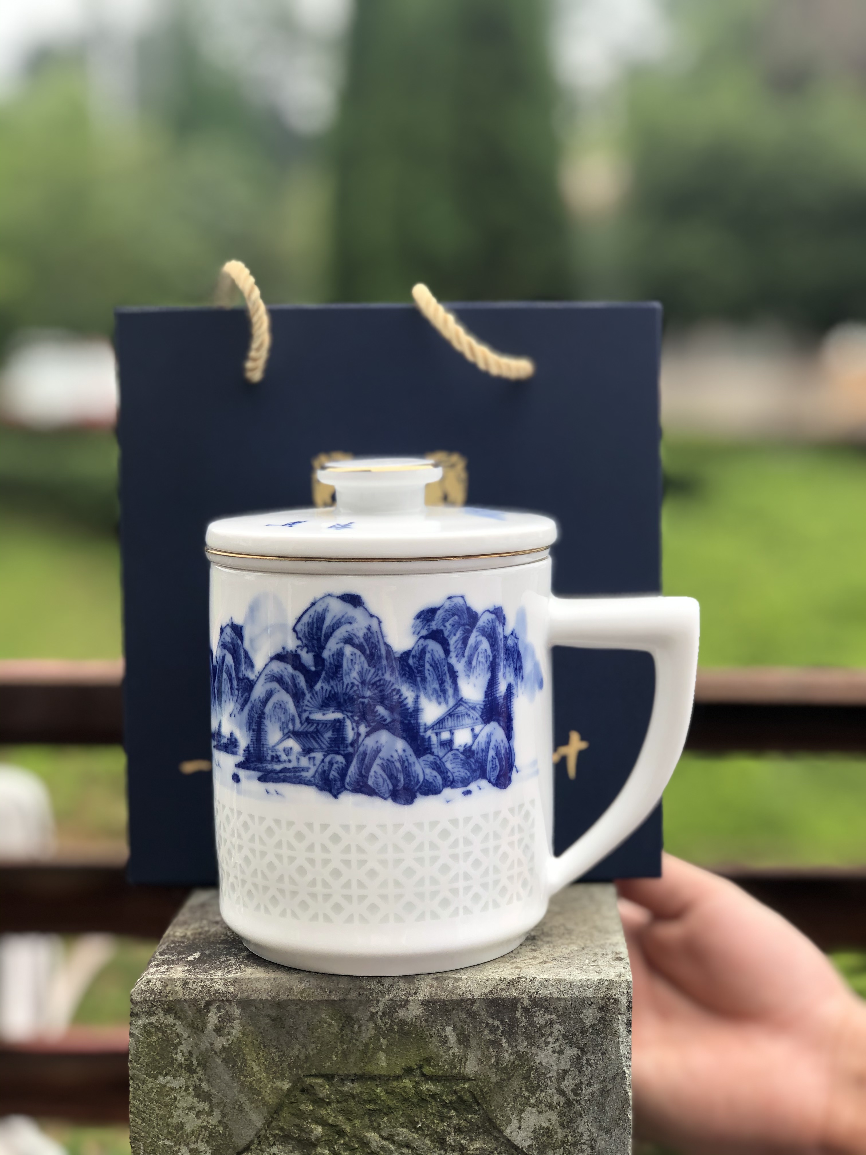 霸葉集團定製 青花玲瓏茶杯