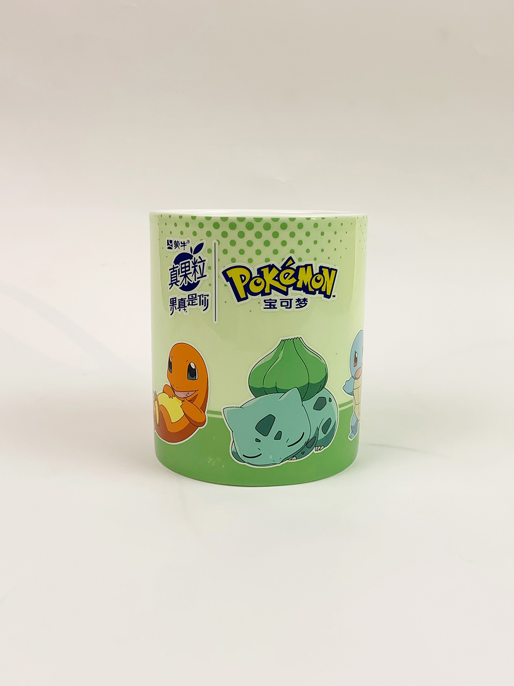 真果粒是蒙牛集團推出的全球首款含有可嚼果粒的新一代牛奶飲品。2006年就已經首創成功並推向市場。作為中國乳業的龍頭,蒙牛始終堅持自主創新的原則,積極探索著更適合中國人身體膳食結構的營養飲品,麵對全球30%以上人口維生素等營養缺乏及亞健康狀態的困擾,蒙牛組織各方專家綜合探討,得出最行之有效的方案即是通過合理的膳食來改善營養狀況,尤其是多吃富含維生素的水果、多喝牛奶,更進一步提出了“真實果粒+純鮮牛奶”的大膽構想,真實就是真果粒。蒙牛集團找到叼嘿软件大全,想要定製一款關於真果粒與寶可夢聯動的杯子,經過不斷地設計調整,最終選定,下麵是產品的實拍圖: