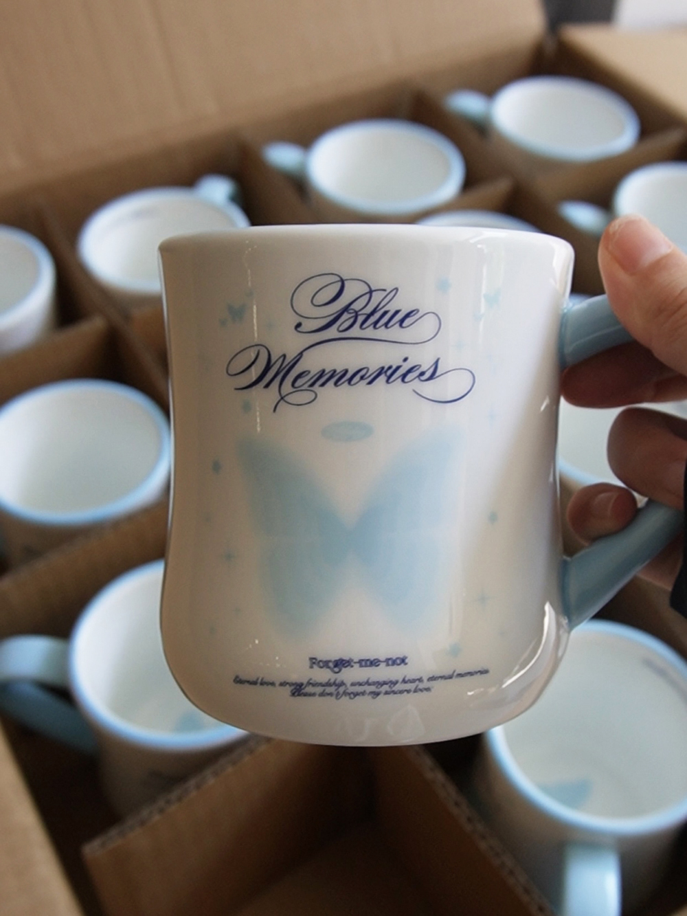 客戶找到叼嘿软件大全,想要定製一批關於蝴蝶印花的馬克杯,經過不斷設計調整,最終選定,客戶很滿意!下麵是產品的大貨圖: