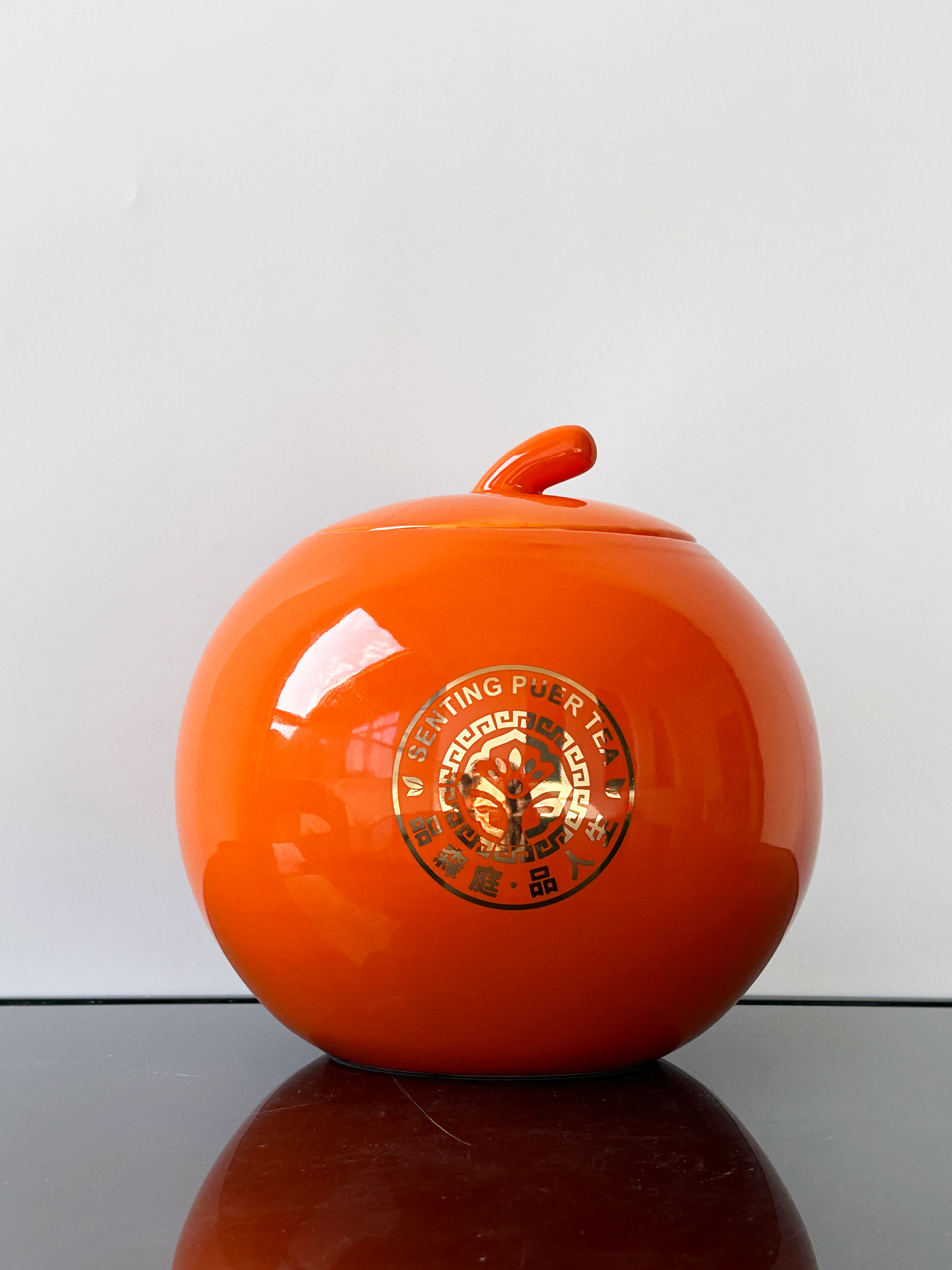 客戶定製 亮色係橙色陶瓷圓型茶葉罐