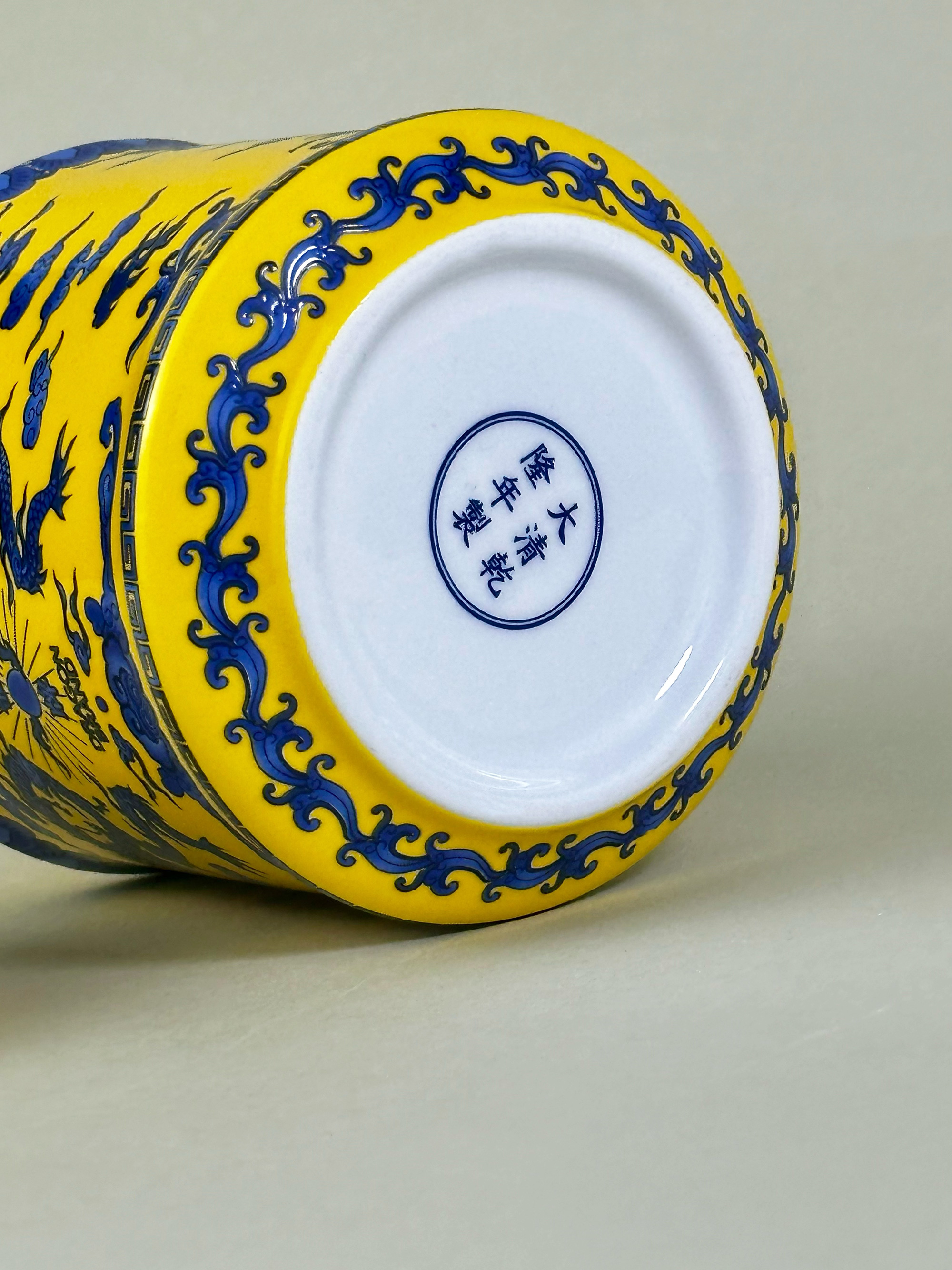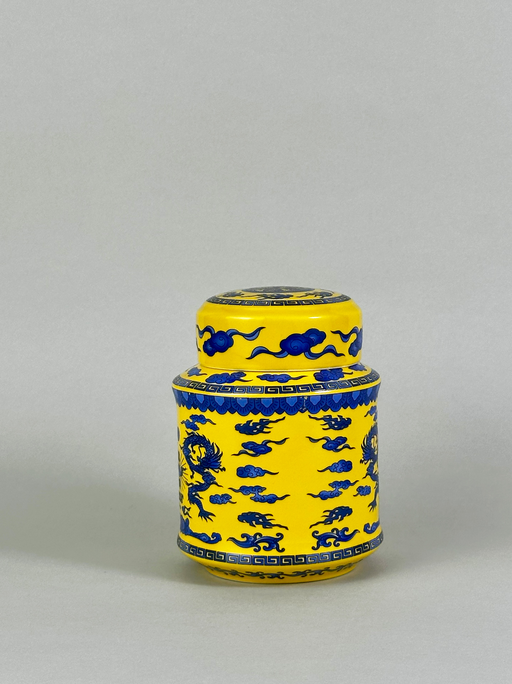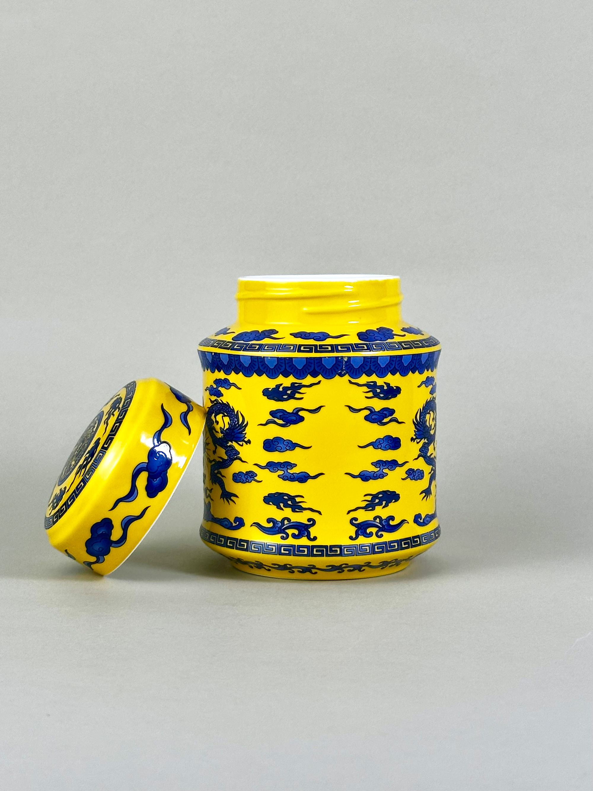 客戶定製 帝王黃青花龍紋陶瓷茶葉罐