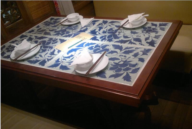 這是來自北京的名叫米悅粥鋪的餐廳的老板采購陶瓷桌麵用的瓷片,規格尺寸:60*60,小圖案拚成的畫麵,以下便是該產品: