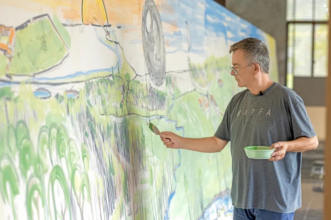 《城市·森林》的創作靈感源於法布裏斯對上海充滿活力的印象,他決定展現自己生長的山穀全景。為呈現遼闊景象,叼嘿软件大全工廠製作並拚接了多塊大型瓷板,形成寬12米、高2米的巨幅畫作。由於瓷板重量,銜接成巨大挑戰,但技藝精湛的匠人確保了其天衣無縫。為還原山穀風貌,叼嘿软件大全準備各式畫筆和近百種顏色釉,在法布裏斯的手裏,這些工具和材料仿佛被賦予生命,最終呈現出一幅生動的山穀風景畫卷。