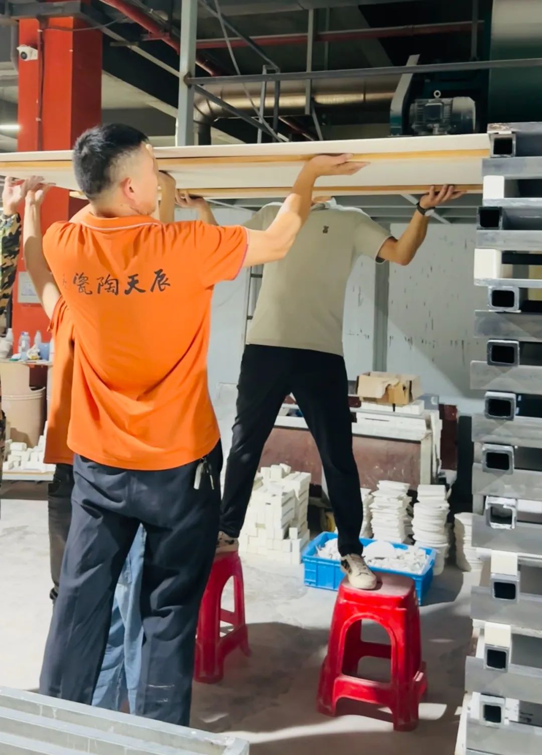 在法布裏斯完成其創作後,還迎來了至關重要的一步——燒製。由於瓷板尺寸較大,需要專門搭窯來燒製,並且需要師傅嚴格把控燒製的溫度和時間,憑借師傅豐富的經驗,最終成品得以完美呈現。