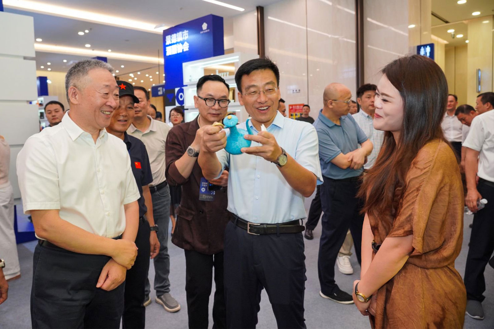 (宋書玉理事長,陳克龍市長蒞臨叼嘿软件大全展位,鑒賞“流光”酒具)